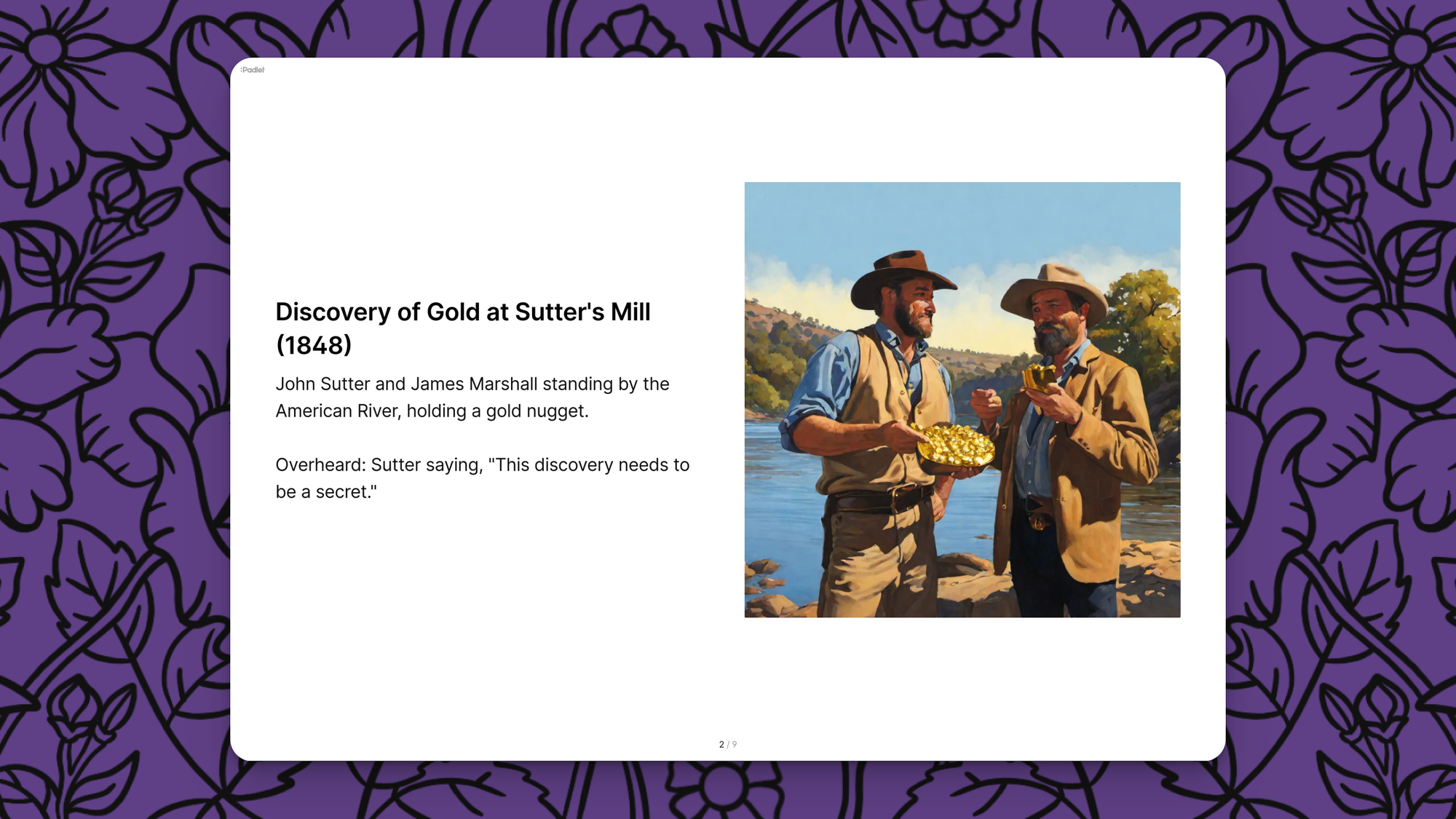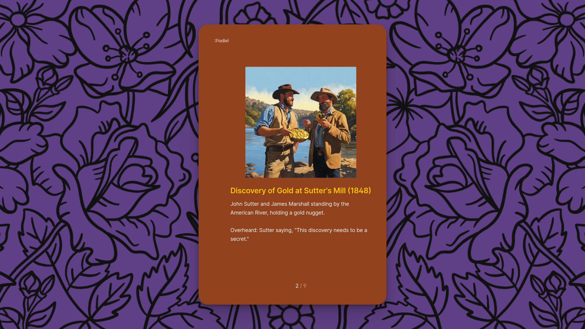 The slides format will dedicate a page to each post and section on your padlet. Posts will be presented as they appear in a padlet slideshow.