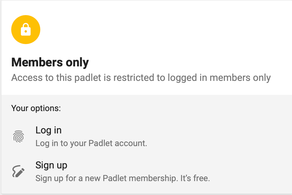 With the Members only privacy level, you can still share a link with anyone you want, but they need to have a Padlet account to access it. If they don't have a Padlet account, they can also sign up for one right away to gain access.