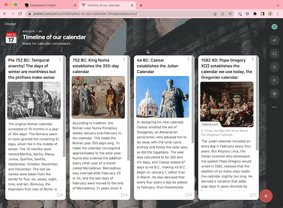When you make a padlet and you fill it with posts, you can copy direct links to attachments and share them individually. This is tremendously useful if you want to share a specific attachment from your padlet instead of sending someone the entire thing.